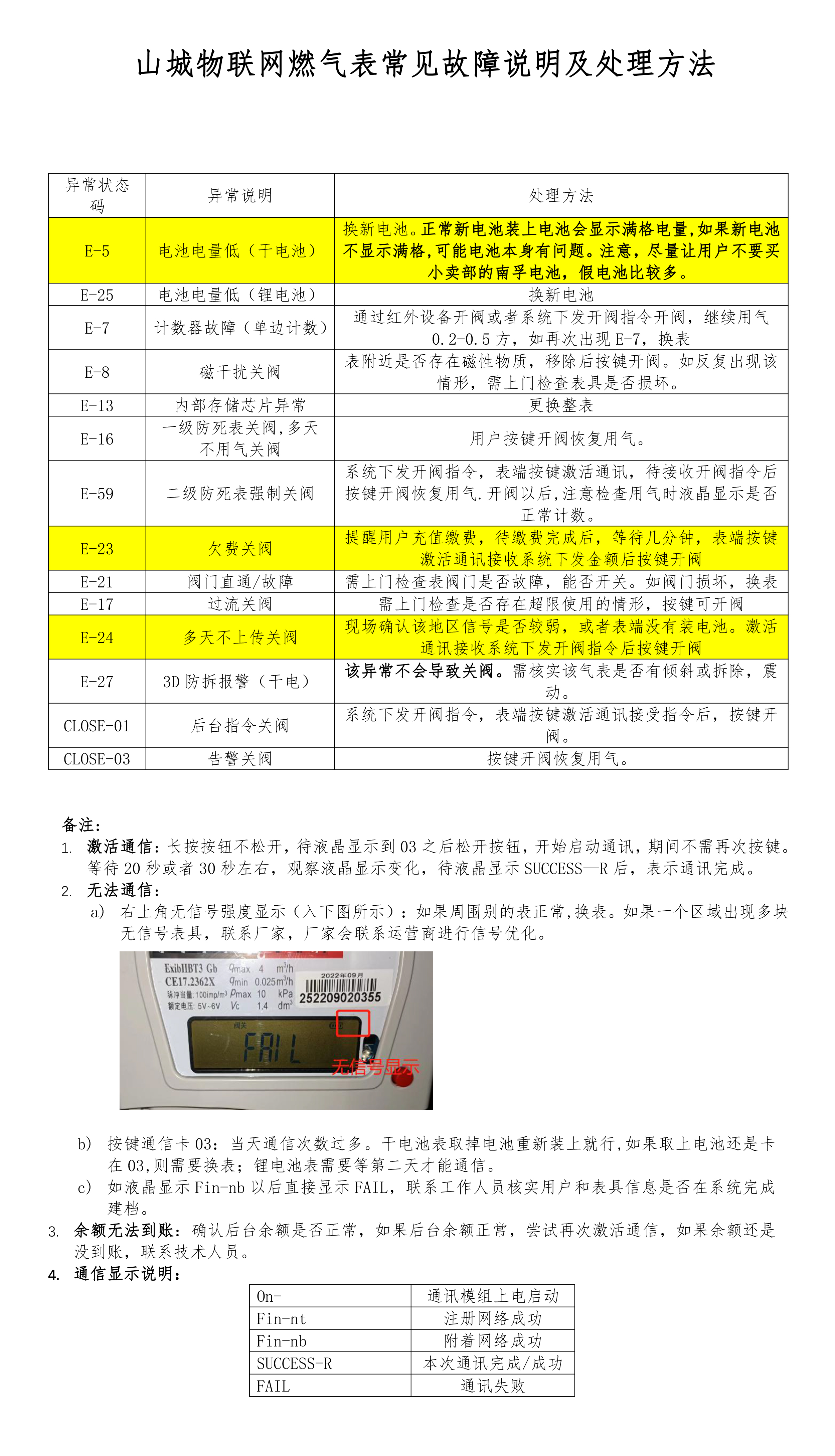山城物聯(lián)網(wǎng)表常見(jiàn)故障說(shuō)明及處理方法