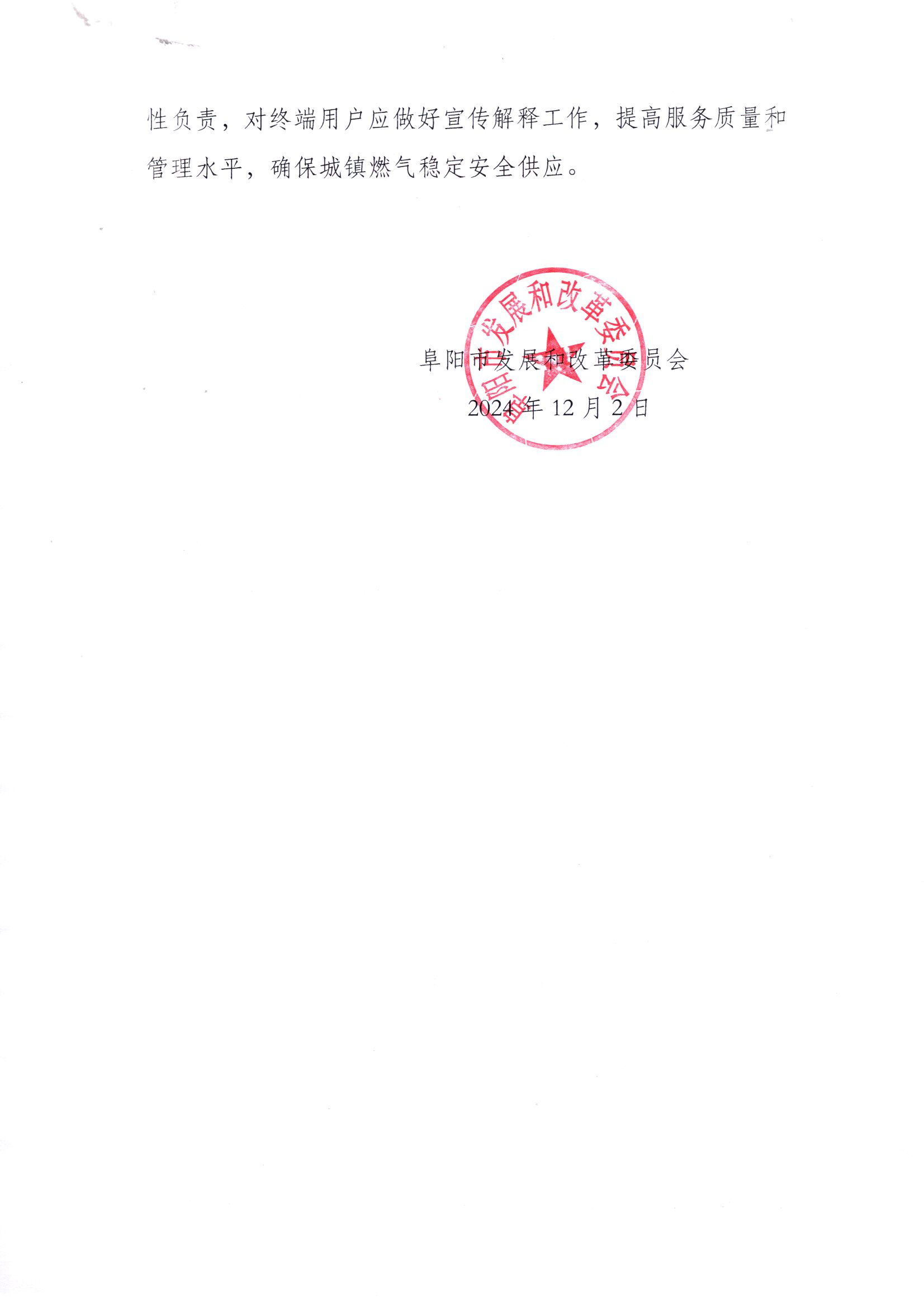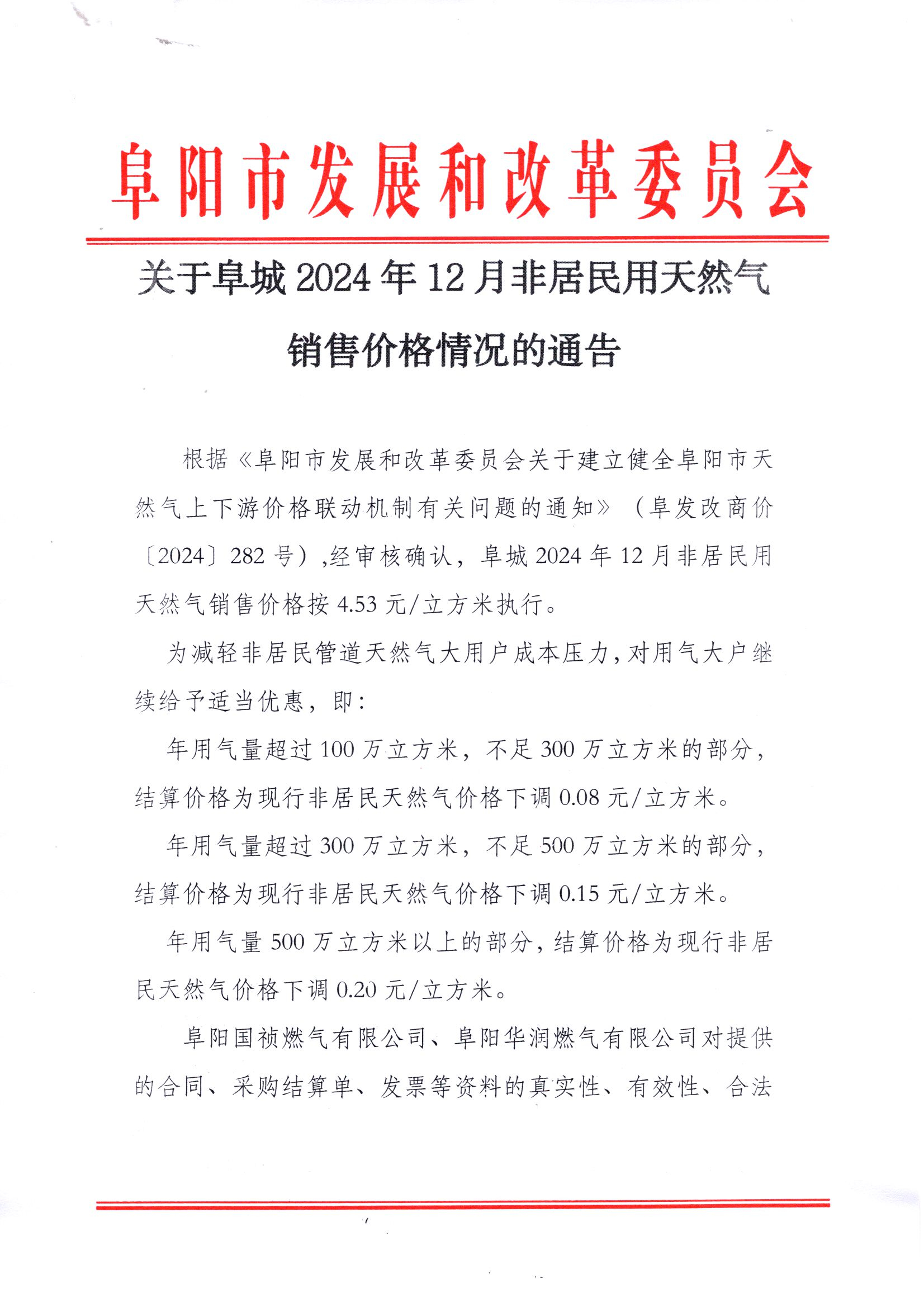 阜城2024年12月非居民用天然氣銷售價(jià)格情況的通知