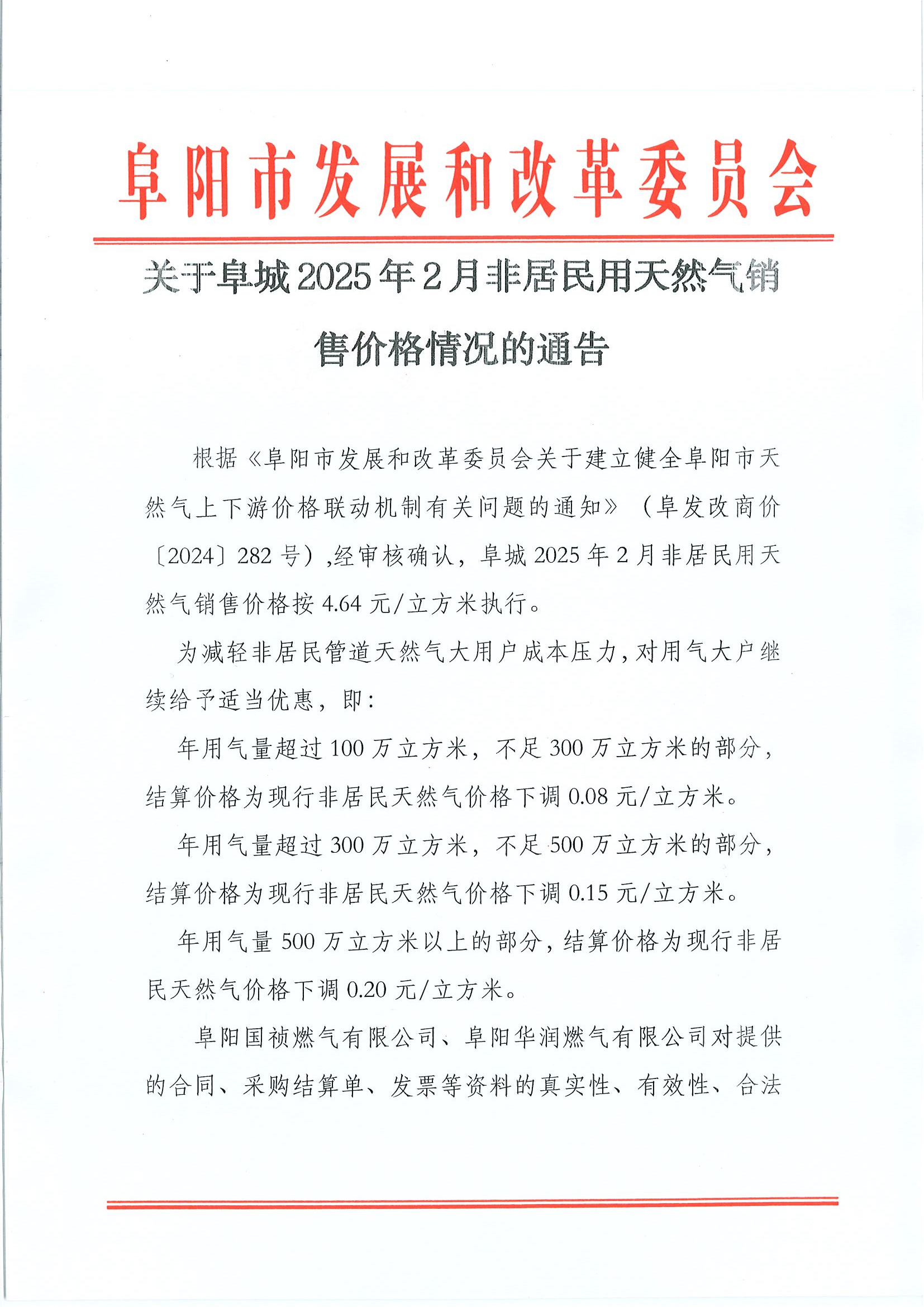阜城2025年02月非居民用天然氣銷售價(jià)格情況的通知
